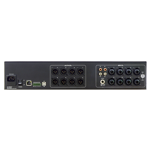 • Output including X-over, PEQ, Gain, mute, compressor/Iimiter,phase, delay and link adjustment and