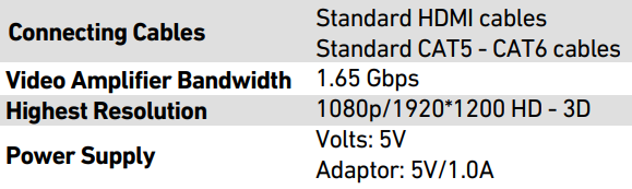 Supporting 1080p Video and Dolby Digital Audio PLUS IR extension for remote controls up to 100m with a single CAT6 cable, this HDMI Extender represents outstanding value for money! Comprising of a Sender Module (with an included 5v power supply) which sends the HDMI data over 1 x RJ45 cable, and a Receiver Module, you simply need one CAT6 cable of your desired length to extend your signal. Each Sender/Receiver unit has a Female HDMI Socket, making them compatible with any of our HDMI Cable range. So whether you’re trying to run HDMI signals to another room in your house, or just to a Projector or TV far away, finally a cost effective solution is at hand! Packaged in a tidy retail box with included power supply, Sender/Receiver, IR cables and Instruction Manual, this HDMI Over CAT6 Balun is compatible with any HDMI enabled device*.