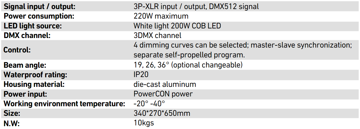 LP 200 PR 200 W zoom led profile, beam angle: 19, 26, 36°. Aluminum housing warm white or cold white is optional.