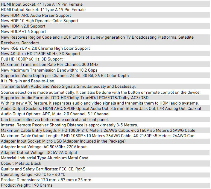 4 X 1 HDMI Audio Switcher